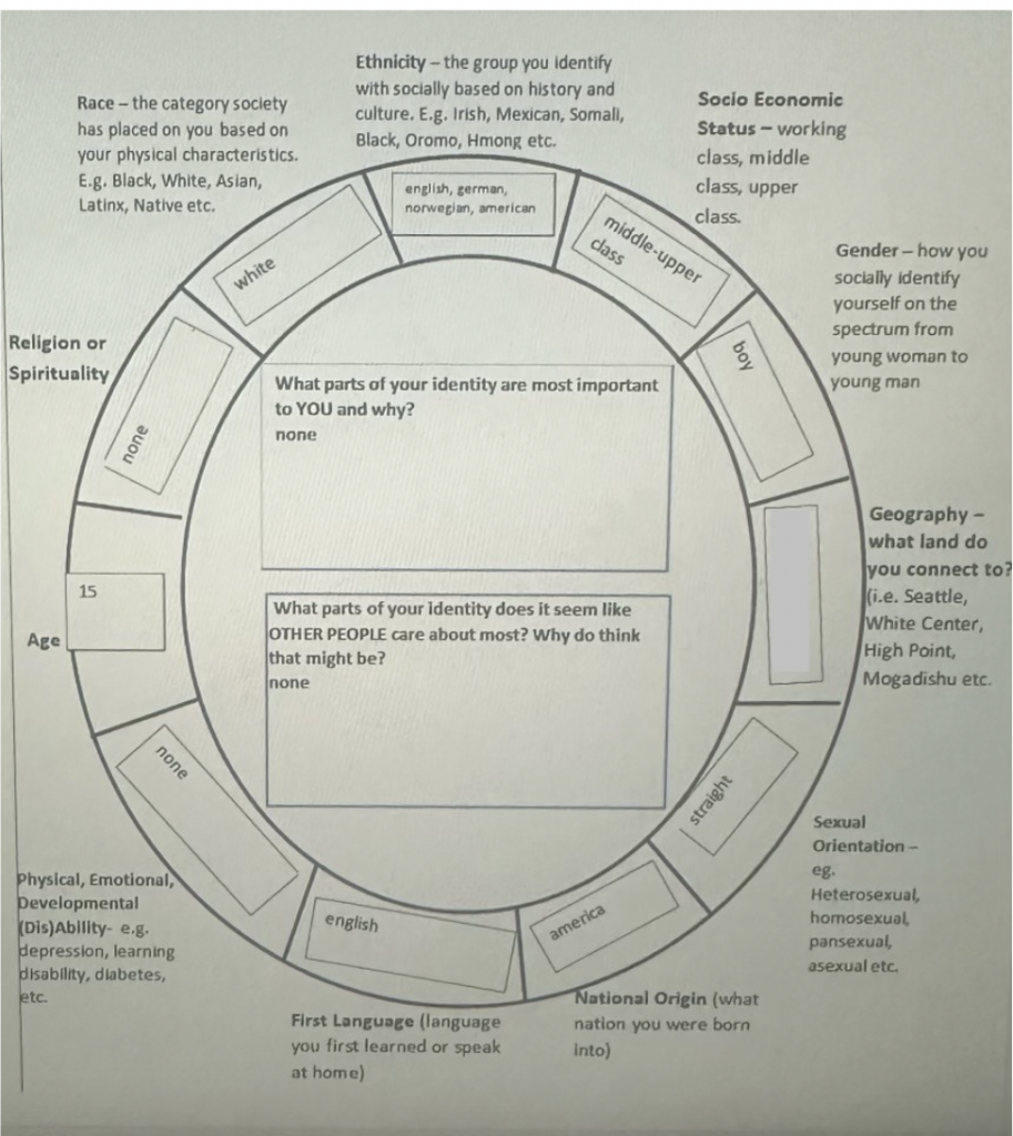 “When filling out a Social Identity Wheel, he (her son) was told that if he identifies as straight that he needed to pick a term that was less offensive. It is completely inappropriate to dictate what terms a student can and cannot use to identify themselves with.”
