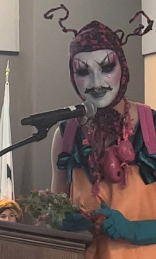 Referring to the drag queens, Jen said, “They were foul, they were bullying, and they turned the podium around so they could point at us when they spoke.” She also said men in drag positioned themselves close to her and other community members and made intimidating comments throughout the meeting.